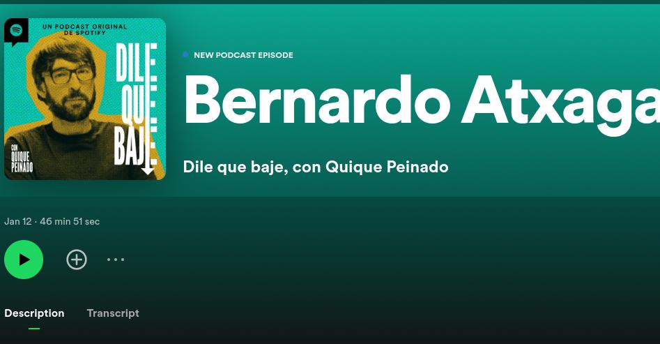 El periodista y comediante Quique Peinado ha entrevistado a Bernardo Atxaga para su podcast, Dile Que Baje, que es producido por Spotify.
