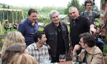 Bernardo Atxaga inmerso en la grabación de la película “El hijo del acordeonista”