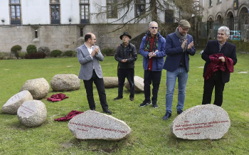 Bernardo Atxaga añade una piedra al jardín “das pedras que falan” de Santiago de Compostela